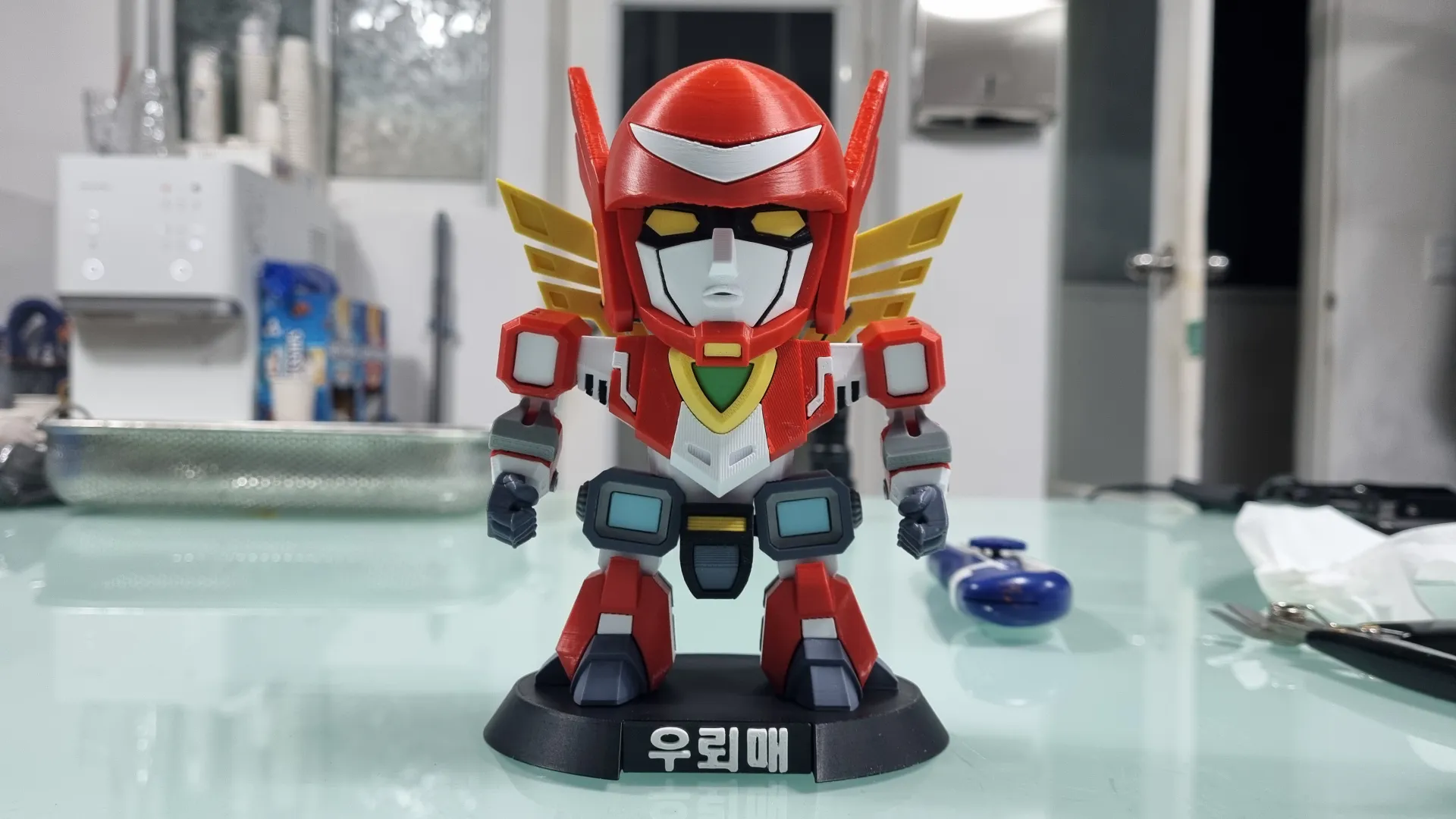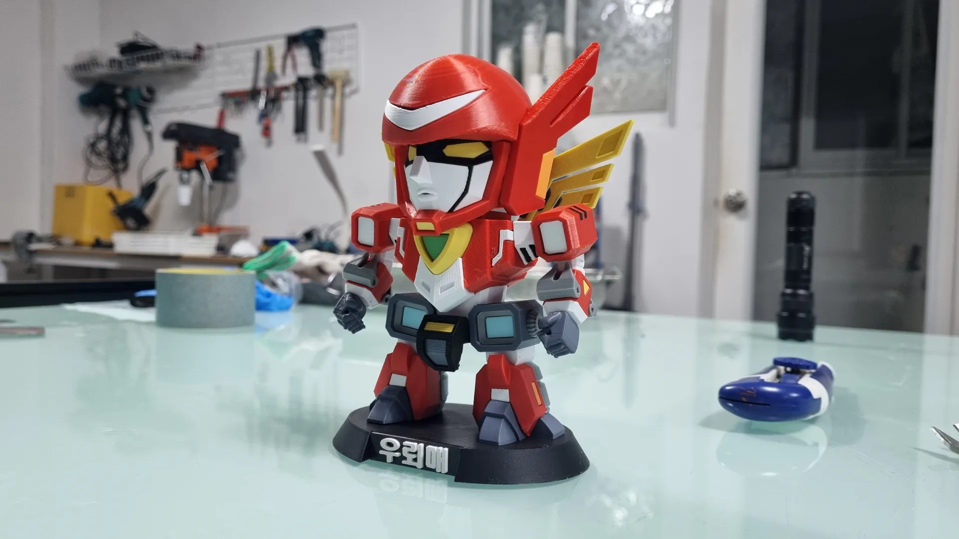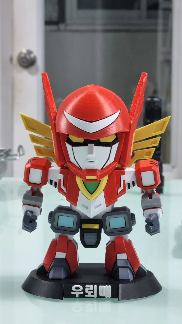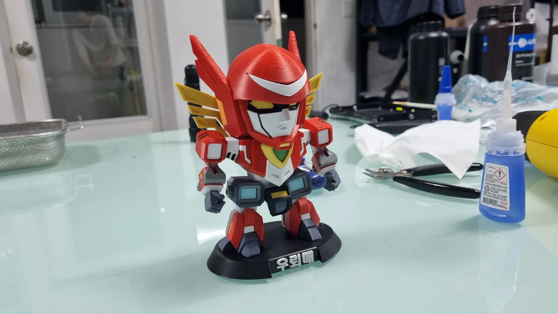 지인의 의뢰로 만들게 되었습니다. 공개된 설계파일을 받아서 FDM 방식으로 출력 후 조립만 진행하였습니다. 도색은 전혀 없고 색상이 다른 파츠를 모두 각각의 색상을 가진 필라멘트로 출력되었습니다. SD 피규어라서 상당히 귀엽네요