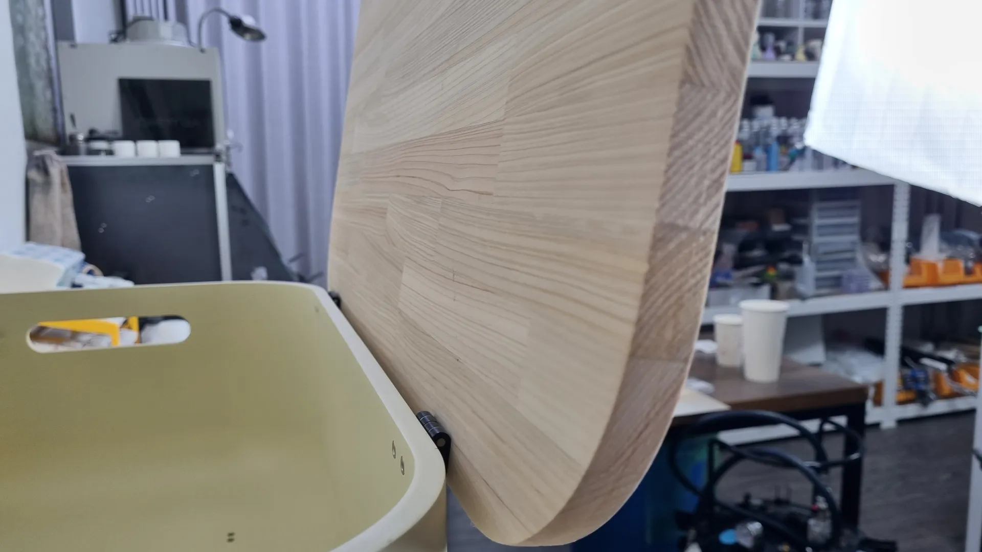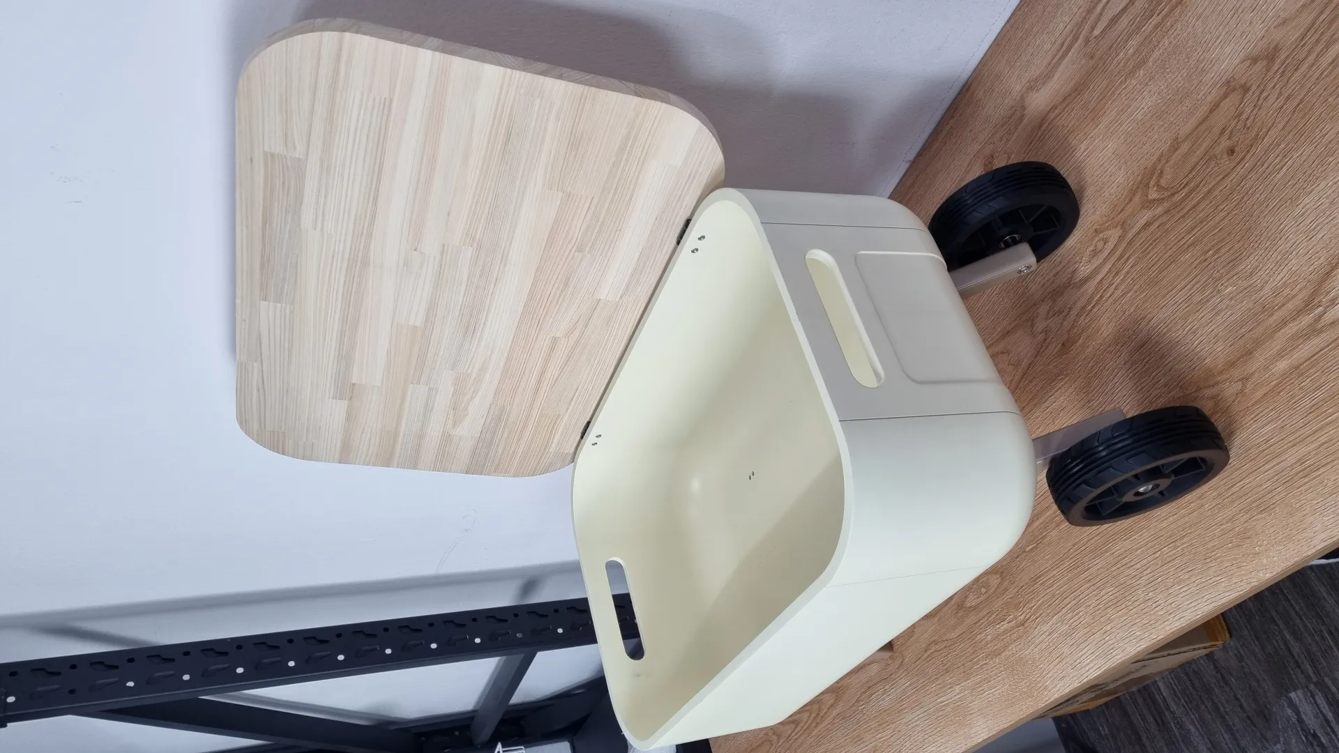 실제사이즈 모형이라서 작업기간도 길고 비용도 꽤나 높았던 작업이었습니다. 다리는 접이식이고, 바퀴도 회전하는 기능성 제품입니다. 상단의 목재는 CNC가공으로 재단하였고 경첩식으로 열고 닫을 수 있습니다.